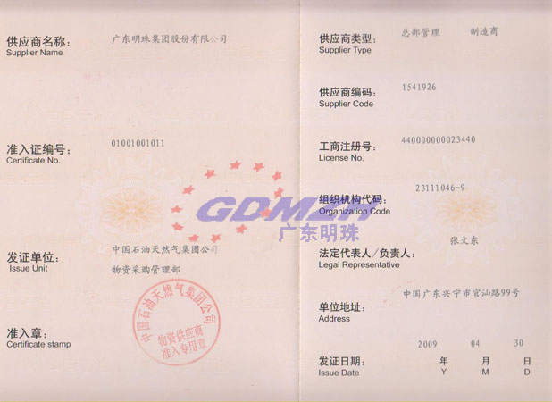 中國石油物資供應商準入證